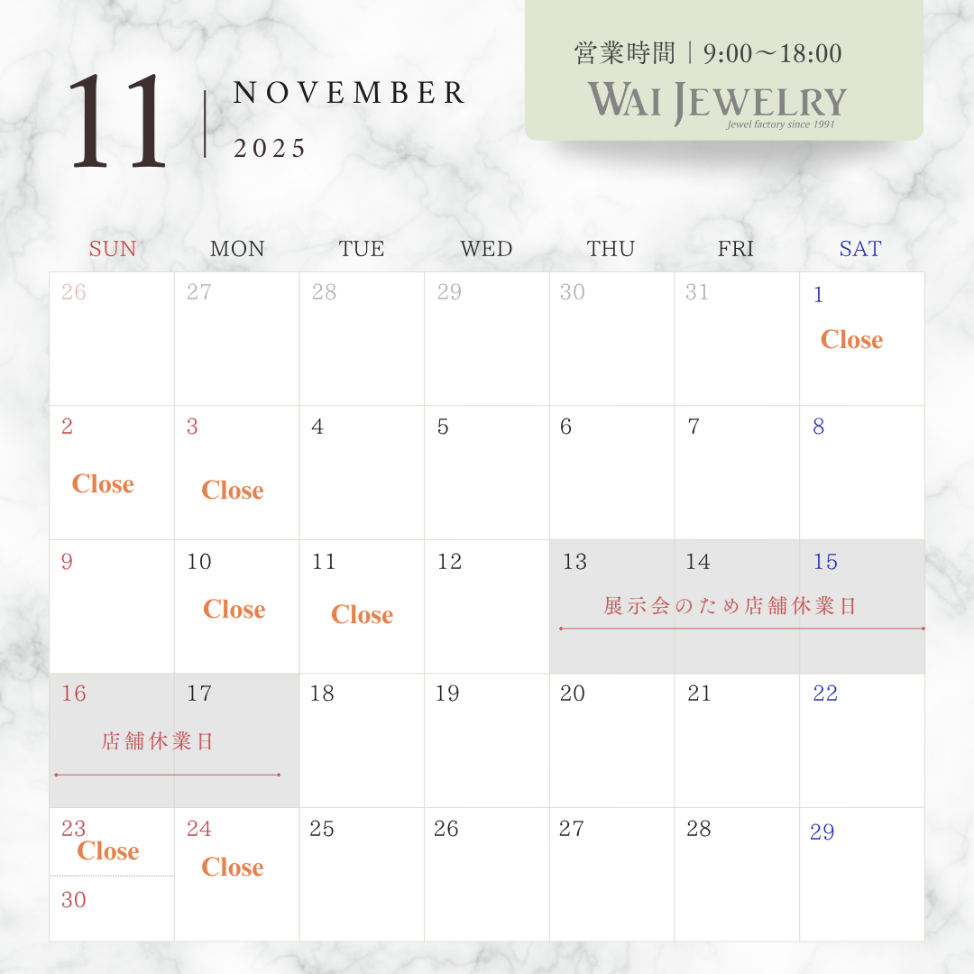 また、WAIJEWELRYオリジナルデザインのジュエリーも豊富にご用意しております。特別な日の贈り物に、ご自身へのご褒美に──ぜひお気軽にお立ち寄りください。皆様の大切なひとときを、永遠の輝きで彩るお手伝いをさせていただきます。